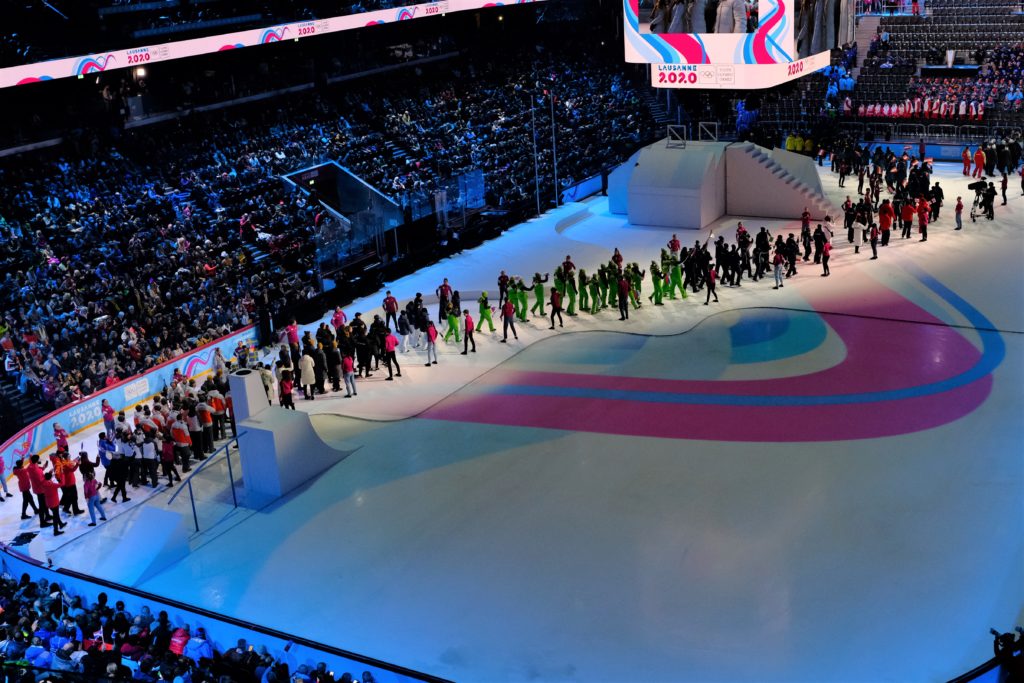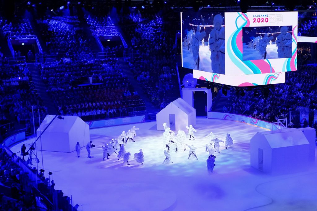 Après un délicieux apéritif dinatoire servi par les équipes de la MDJ dans les chaleureux locaux du Cinéma Cinétoile de Malley, la FSAMJ a eu l’honneur de convier ses invités à assister à la cérémonie d’ouverture officielle des Jeux Olympiques de la Jeunesse à la Patinoire de Malley
